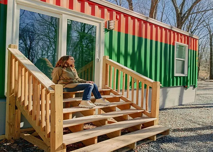 **Rooms** at Camptel Poconos are thoughtfully designed for comfort, featuring air conditioning, flat-screen TVs, and inviting seating areas. Each guest room comes complete with a private bathroom, ensuring convenience with showers and complimentary toiletries. Select rooms boast a serene patio or garden views, providing an idyllic setting for relaxation after a day of exploration. Guests will also appreciate additional amenities including coffee machines, refrigerators, and microwaves in some of the accommodations.